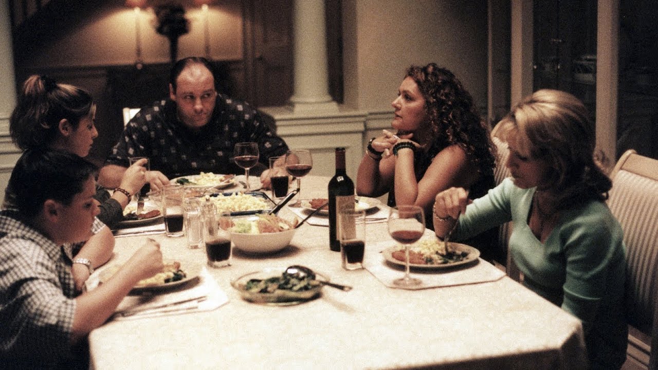 Tony, Carmela, and Meadow meet in their kitchen to discuss her punishment. It's quite obvious Tony doesn't know how to punish her when Meadow volunteers to relinquish her credit card for two weeks and Tony awkwardly blurts out "three!"